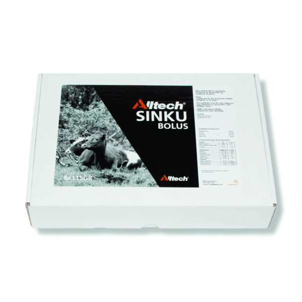 Mineralstatus har en kjent sammenheng med ulike kalvingsproblemer, fruktbarhet og ytelse i laktasjonen, og bruk av mineralbolus er en viktig del av mineralmangementet. Sinku bolus dekker kuas daglige behov for jod, kobber, sink, kobolt, mangan, selen og vitaminer.
